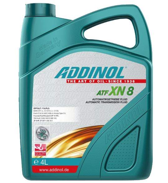 ADDINOL ATF XN 6 ist ein synthetisches High – Performance – Getriebeöl für Automatikgetriebe mit verbessertem Komponentenschutz und erhöhtem Schaltkomfort. Es bietet durch hohe elektrische Resistivität verbesserten Schutz speziell beanspruchter Komponenten in Elektro- und Hybridantriebssträngen. ATF XN 6 vereint die Anforderungen von Dexron VI und Mecron LV in einem Produkt und eignet sich so für den Einsatz in Automatikgetrieben mit 6 bis 8 Schaltstufen in einer Vielzahl von Fahrzeugen.